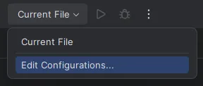 To set up a debugger in IntelliJ, you need to create a new run configuration. You can do this by clicking the dropdown next to the run button and clicking Edit Configurations...: